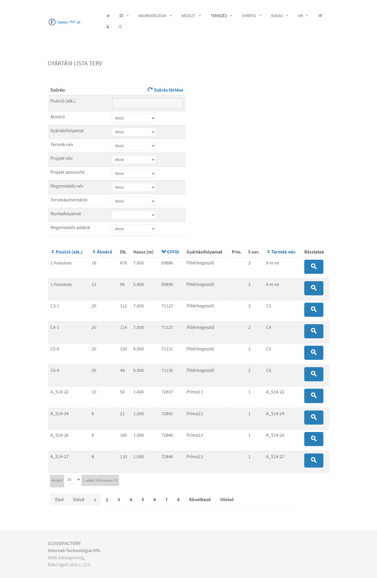 Fundament Plusz. Kft. betonacél gyártó üzletága számára fejlesztett vállalatirányítási rendszer.